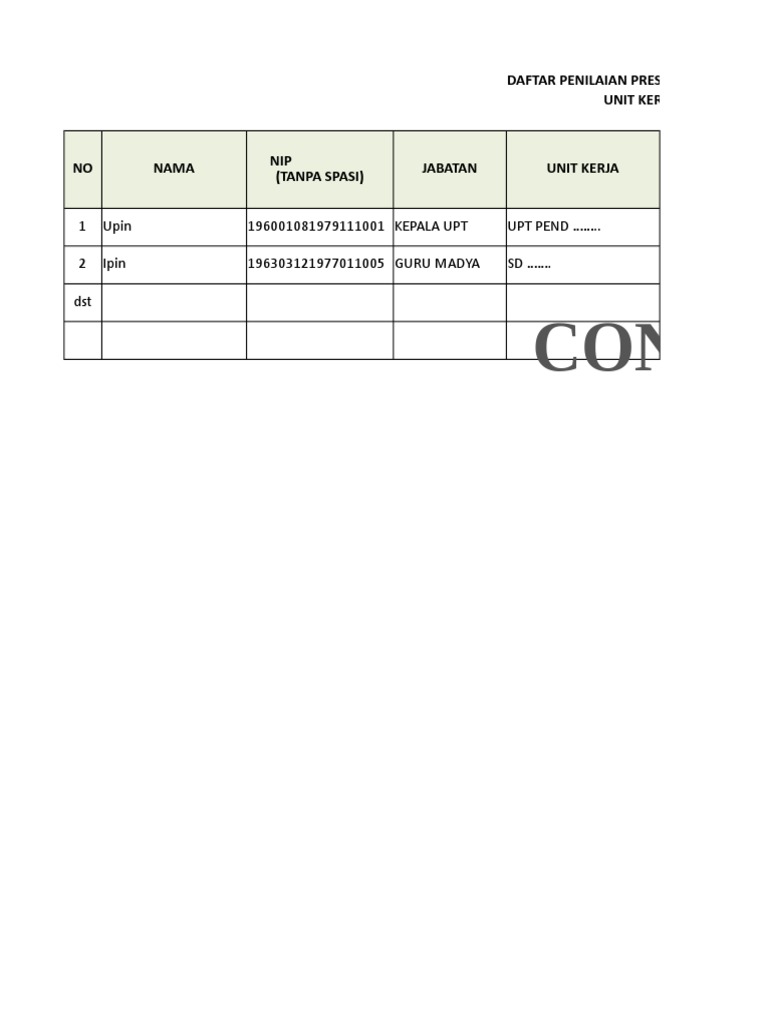 BORANG PENILAIAN PEKERJA - Download DOC from img.dokumen.tips Kosep penilaian prestasi kepala sekolah penilaian prestasi kerja kepala sekolah adalah suatu proses penilaian yang dilakukan secara sistematis oleh pejabat penilai terhadap sasaran kerja dan perilaku kerja serta kehadiran kepala sekolah. Sedangkan prestasi kerja yaitu hasil kerja yang dicapai oleh setiap pns pada satuan organisasi yang mencakup dua hal yaitu Penilaian prestasi kerja pegawai negeri sipil. Matang berarti memenuhi empat persyaratan, yaitu: Penilaian prestasi kerja pegawai negeri sipil dilaksanakan secara sistematis yang penekanannya pada tingkat capaian sasaran kerja pegawai atau tingkat capaian hasil kerja yang telah disusun dan disepakati bersama antara pegawai negeri sipil dengan pejabat penilai. Sebagai contoh, jika tony dalam bidang perakaunan mempunyai bakat tertentu untuk melakukan pembayaran gaji dengan betul, walaupun dengan komplikasi tambahan. Penilaian prestasi kerja pns adalah suatu proses penilaian secara sistematis yang dilakukan oleh pejabat penilai terhadap sasaran kerja pegawai dan perilaku kerja pns. Penilaian prestasi kerja pns dilakukan berdasarkan prinsip objektif, terukur, akuntabel, partisipatif, dan transparan.