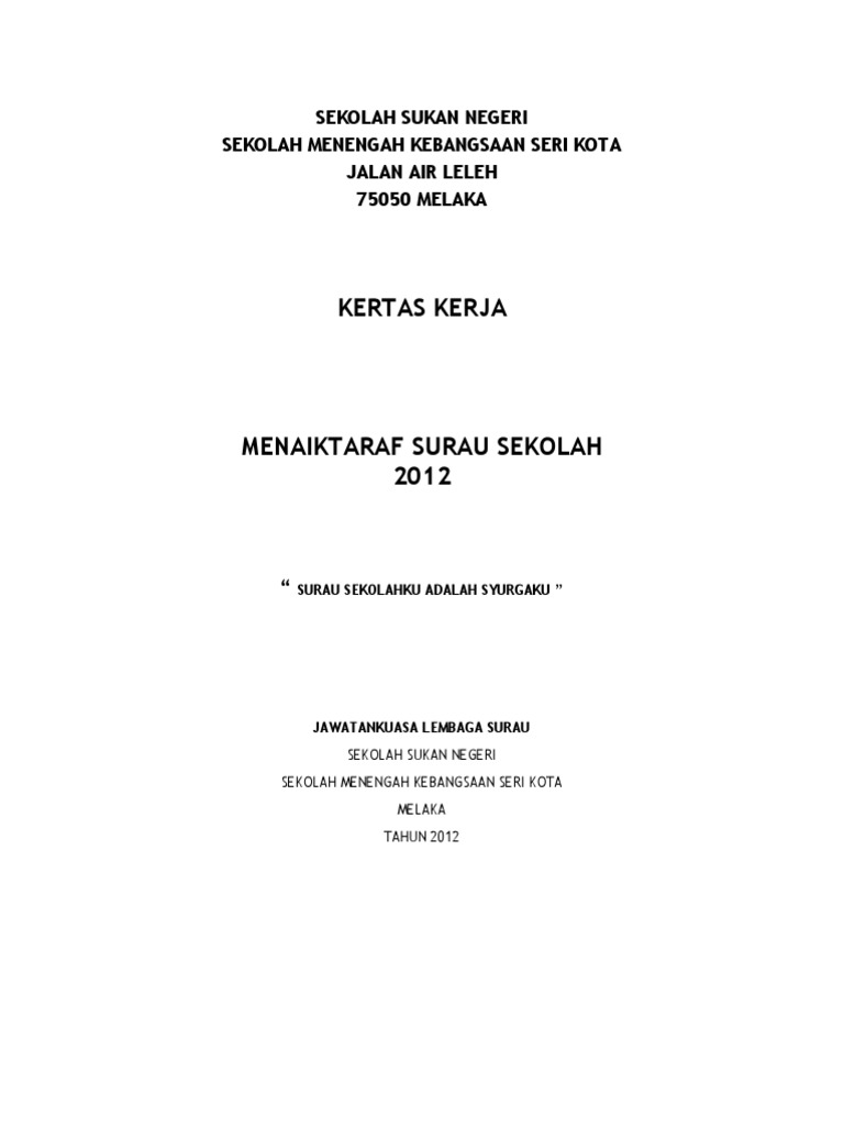 Mpu3412 khidmat masyarakat gotong royong membersihkan dan menceriakan surau kampung nyatuh, rantau, syed ahmad razali syed abdul rahman 1 year ago. 2.0 tujuan tujuan kertas kerja ini dikemukakan adalah untuk memohon kebenaran dari pihak sekolah bagi membenarkan program di bawah anjuran panitia pendidikan sivik kewarganegaraan dan pendidikan islam&moral. Panitia pendidikan islam 0 objektif 3. Kertas kerja program gotong royong perpaduan bersepadu2. Surau nurul naim jalan kenanga 4.