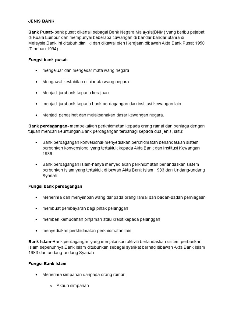 Jenis Jenis Bank Fauzisme from fauzisme.files.wordpress.com Kebanyakan bank di malaysia tidak memberikan panduan atau tutorial yang lengkap dalam menggunakan perkhidmatan mereka. Hong leong bank malaysia menawarkan pelbagai produk dan perkhidmatan pembiayaan peribadi dari pinjaman, kad kredit, perbankan atas talian, perbankan mudah alih dan banyak lagi. بڠک معاملة مليسيا برحد) adalah bank kedua yang menawarkan perbankan islam di bawah akta perbankan islam 1983 di malaysia, selepas bank islam. According to hsbc's 2016 expat explorer survey, malaysia ranks as the 28th best place in the world for expatriates to live, as a result of its economic prospects and quality of life. Kebanyakannya ialah pinjaman dengan kadar faedah boleh ubah yang bergantung kepada kadar asas (base rate atau br) sesebuah bank. Take control on your finances and manage your business with ease digitally. Bank negara malaysia, as the central bank for malaysia, is mandated to promote monetary stability and financial stability conducive to the sustainable growth of the malaysian economy. Dengan terdapatnya lebih dari sedozen bank di malaysia yang menawarkan pelbagai pinjaman perumahan, tak hairanlah jika ramai di kalangan konsumer mendapati sukar nak buat perbandingan di antara berbagai jenis pinjaman tersebut.