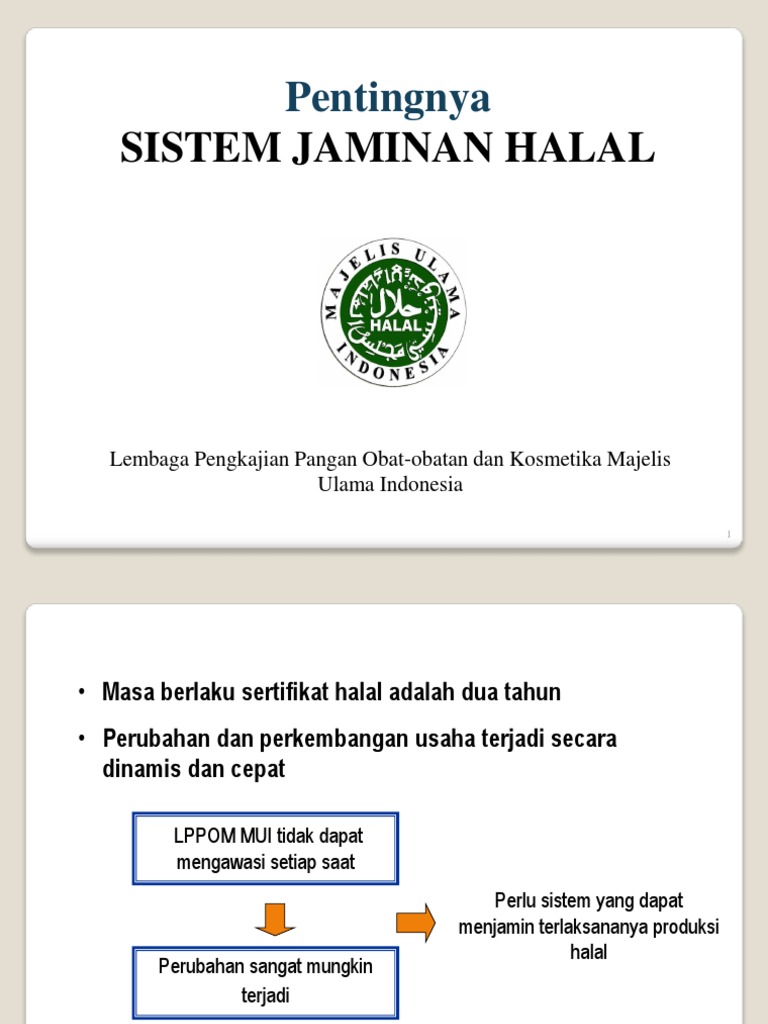 Dalam struktur pengurusan halal malaysia, pegawai yang menguruskan permohonan, menjalankan penilaian dan pengauditan dan melakukan. Tahukah kita bahawa mulai 1 julai 2013 ini, jabatan kemajuan islam malaysia (jakim) mewajibkan semua permohonan baru pensijilan halal malaysia dalam kategori. Jawatankuasa ini juga mengawasi pelaksanaan harian polisi halal dan sistem pengurusan jaminan halal toyyiban. Lppom mui kalimantan timur lppom mui kaltim menerapkan sistem jaminan halal has 23000. Secara ringkasnya, sistem jaminan halal (sjh) membantu memastikan status kehalalan bahan mentah, proses dan produk yang mendapat pengiktirafan sijil halal adalah dijaga dan dipantau sepanjang masa secara berterusan dalam tempoh 365hari setahun dan 24jam sehari.